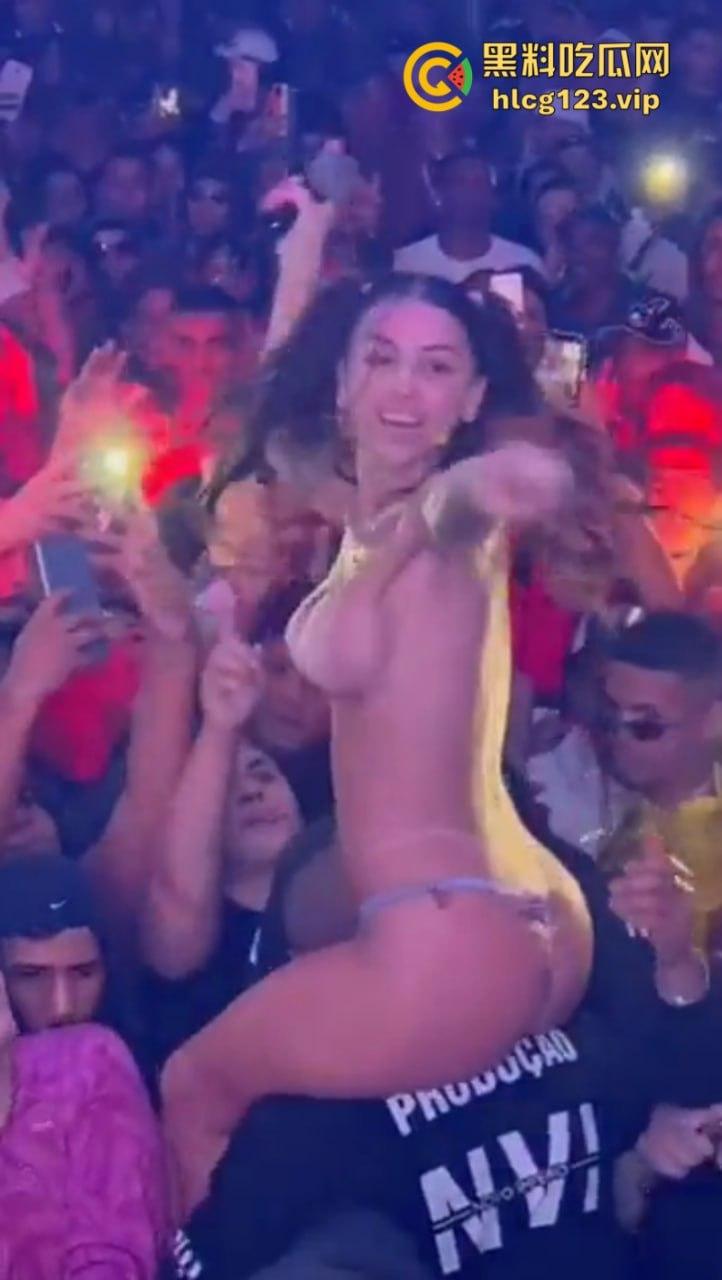 巴西女歌手【皮波基尼亚Pipokinha】穿丁字裤进入观众群 男粉丝集体失控 摸遍她的胸部臀部 丁字裤被拉开!